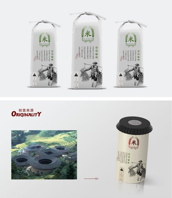 这组大米包装九游球赛-九游(中国)上采用了人物手绘结合文字的方式进行有序的排版,罐装造型采用客家围屋,整体的包装九游球赛-九游(中国)充分地体现出了客家人的勤劳与朴实,还有的采用扁平化的插画手法形式,采用红色和撞色印在牛皮纸上,体现出了东北特色的中粮有机大米,其他的大米包装九游球赛-九游(中国)也各具自己的包装特色。