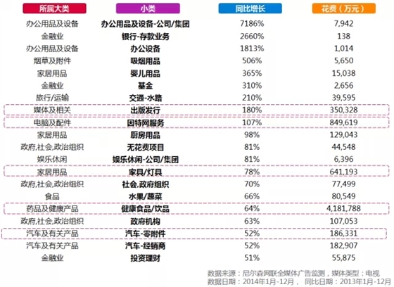 图四:2014年全国市场各行业广告投放变化